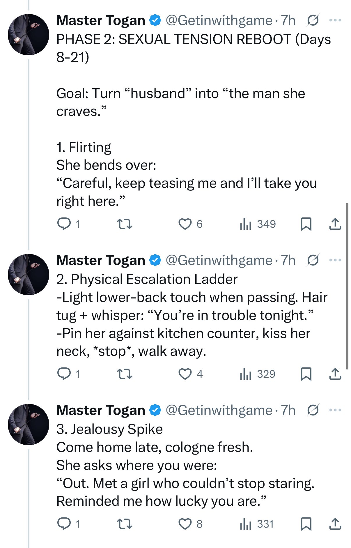 Thanks to Taoki on Twitter for screenshotting his jaw-droppingly awful advice for husbands looking to put the spark back into their marriage.