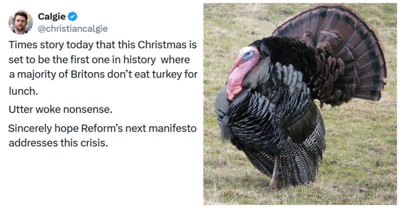 A Daily Express journalist suggested Reform UK should address the ‘crisis’ of people eating less turkey at Christmas, and the internet gave him a good stuffing
