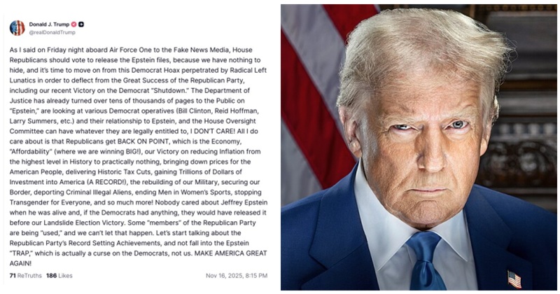 So now Trump is telling Republicans to vote in favor of releasing the Epstein files… but this is obviously a game. He doesn’t want them released. If he did, why doesn’t he release them right now? He’s the president. He could make them public this instant.