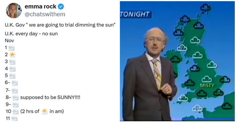 A conspiracy theorist claimed the government is making the weather bad …in the UK …in November! 17 brutal comments that rained on her parade