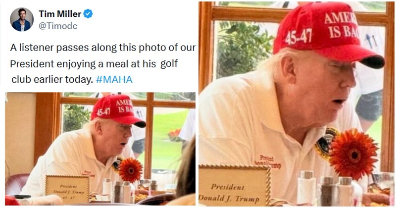A listener passes along this photo of our President enjoying a meal at his golf club earlier today. #MAHA pic.twitter.com/MM31yy2HCw