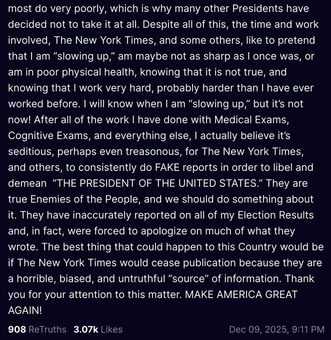 Nutty stuff. Getting worse. How will his staff deal with this decline in the coming three years? Danger. https://t.co/1p0FhXwLBy— Barry R McCaffrey (@mccaffreyr3) December 10, 2025