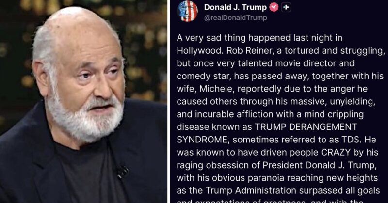 But we’re not sure he’s ever set the bar quite so low as this, after he took to social media to attack the beloved Hollywood director Rob Reiner and his wife Michele just hours after they were found dead in their home, victims of an apparent homicide.