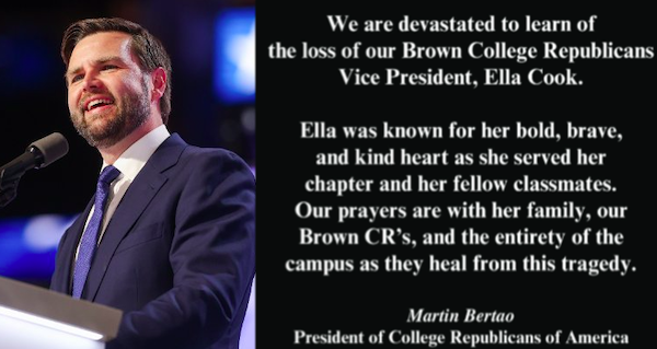 JD Vance initially appeared to mourn only one of the Brown University school shooting victims and everyone said the same thing