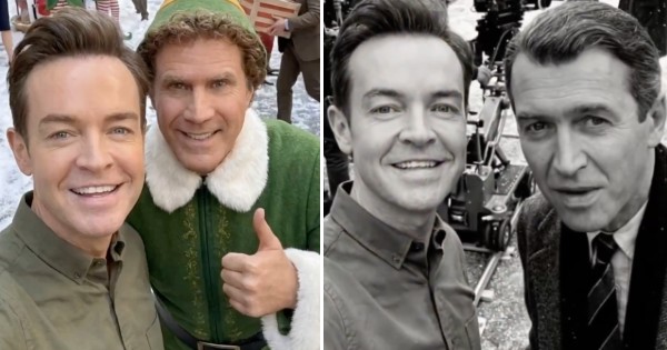 In it, Mulhern poses for selfies with a range of characters from Christmas movie classics like It’s A Wonderful Life, Elf, The Holiday and Love Actually.