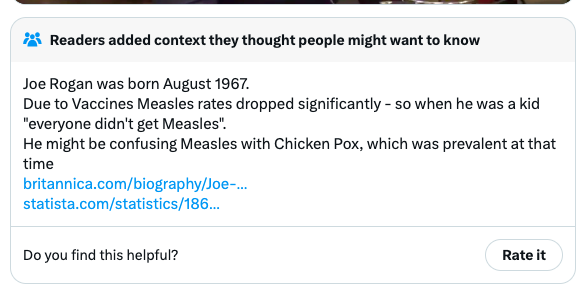 Twitter’s Community Note didn’t take long to call Rogan out on his B.S.