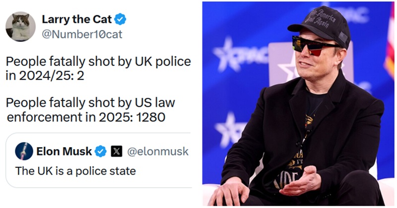 Larry the Cat’s grim data scorched Elon Musk’s accusation that the UK is a police state – 15 nods of agreement
