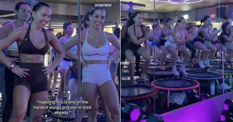 To the gym now – well, it is that time of year – where these women appear to be going for it on a ‘Sunday therapy session’ in some style, in a video posted on TikTok by @vikkyrosy.