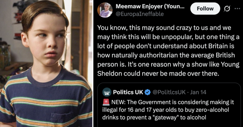 Ah yes, if only Brits weren't so naturally authoritarian then we might've made some shows as wild as *checks notes* Young Sheldon https://t.co/tLSjuFX1Se pic.twitter.com/F367m2bedf