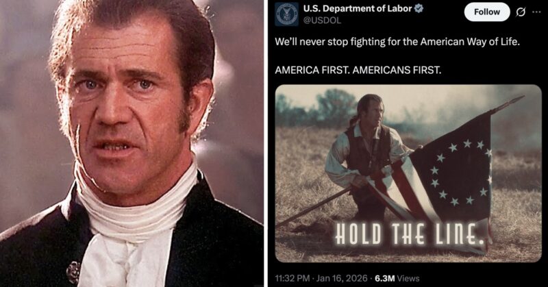 The US Labour Department was trolled over its use of this Mel Gibson movie and the Maga fury it prompted was next level