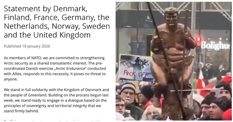 Donald Trump’s threat to raise tariffs on 8 European countries until they let him have Greenland got a diplomatic but firm eff off – 19 nods of approval