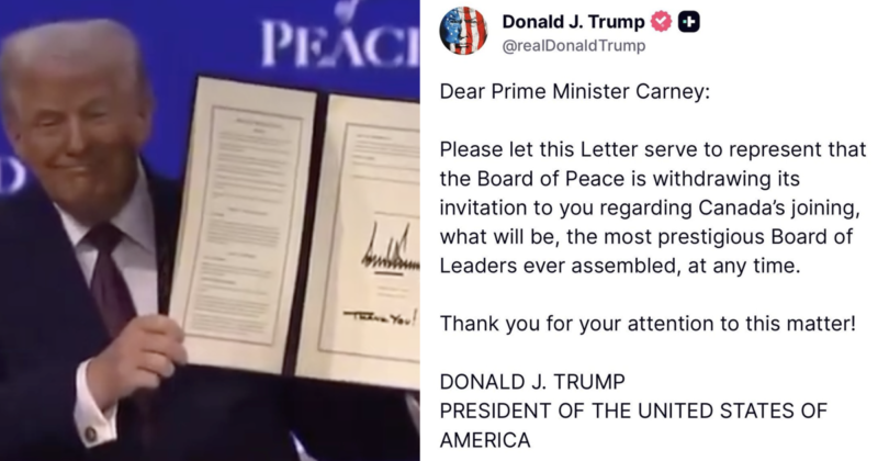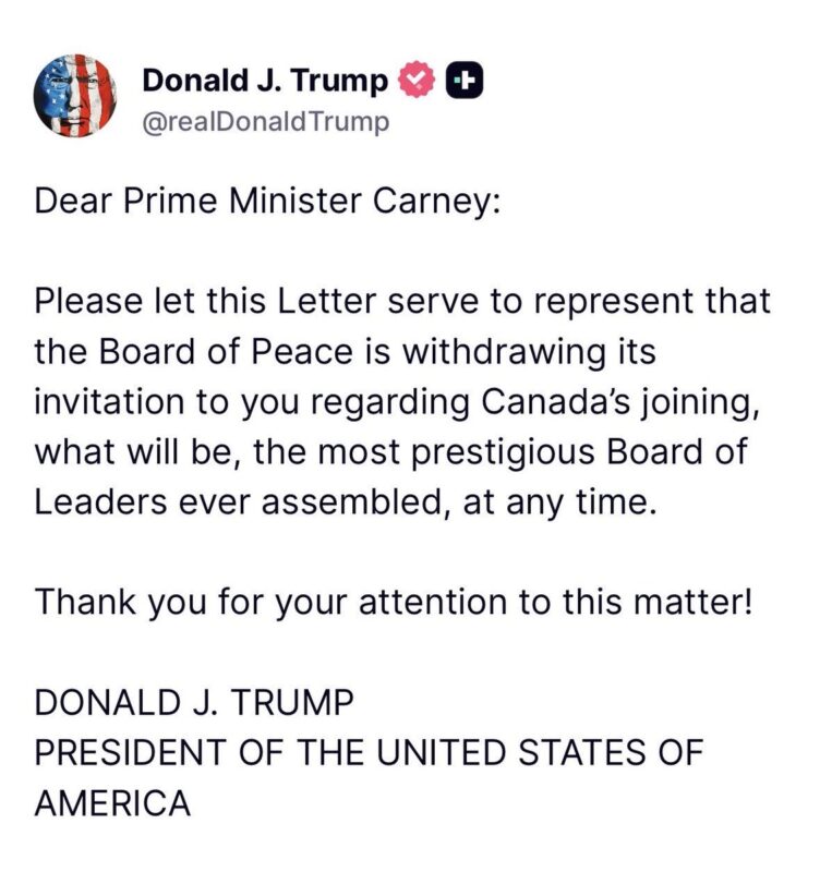Trump just uninvited Canada from his little “Board of Peace” because Carney didn’t kiss the ring.