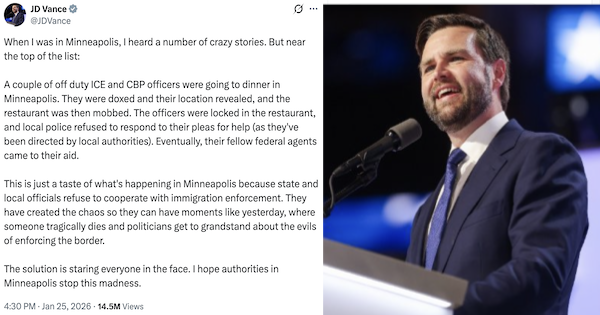 — JD Vance (@JDVance) January 25, 2026