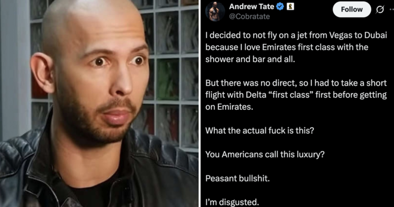 Andrew Tate got his excuses in early for flying Delta Airlines and was mocked all the way to 40,000 feet