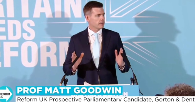 🚨Matt Goodwin announced as Reform UK candidate for Gorton & Denton by-election🚨