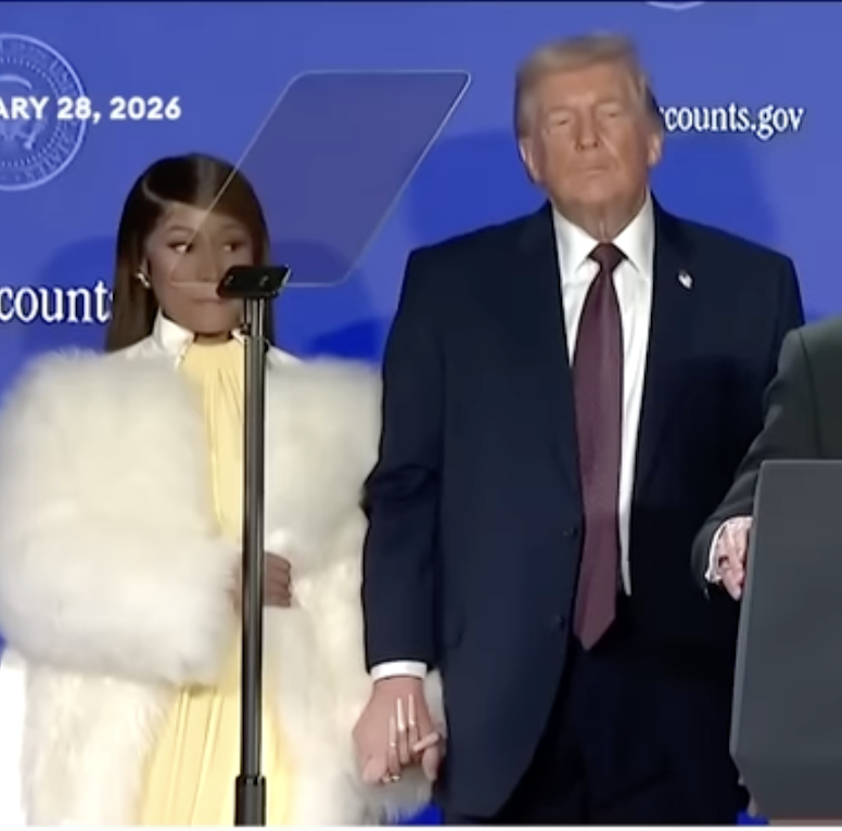 Trump’s corpse-colored claw clutching Nicki like she’s a clearance-rack handbag.