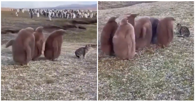 Need a timeline cleanse? This video of a group of penguins meeting a cat for the first time fits the bill