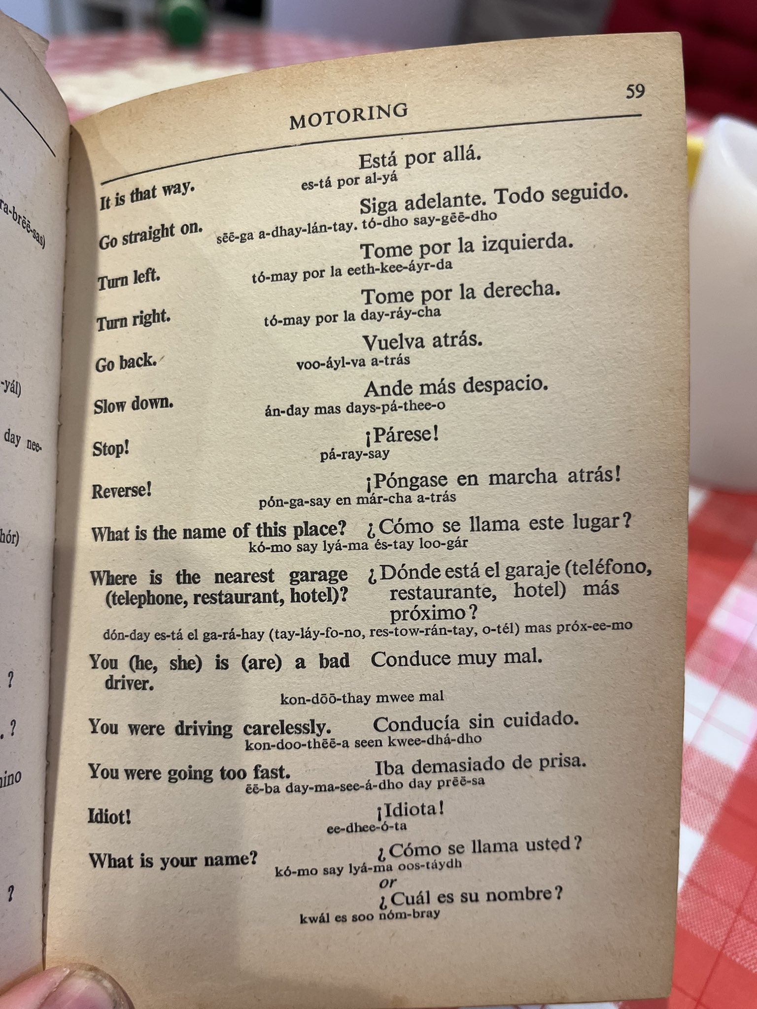 And now, comedian Al Murray has unearthed a 1960s-era example of Collins Spanish Phrase Book which certainly fits the ‘old-fashioned’ label with its examples of phrases and questions which were deemed appropriate for everyday use for a visitor to Spain at the time.