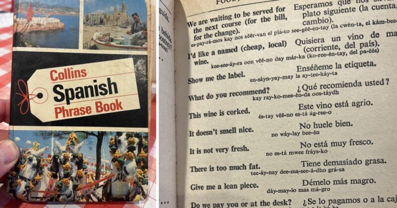 And now, comedian Al Murray has unearthed a 1960s-era example of Collins Spanish Phrase Book which certainly fits the ‘old-fashioned’ label with its examples of phrases and questions which were deemed appropriate for everyday use for a visitor to Spain at the time.