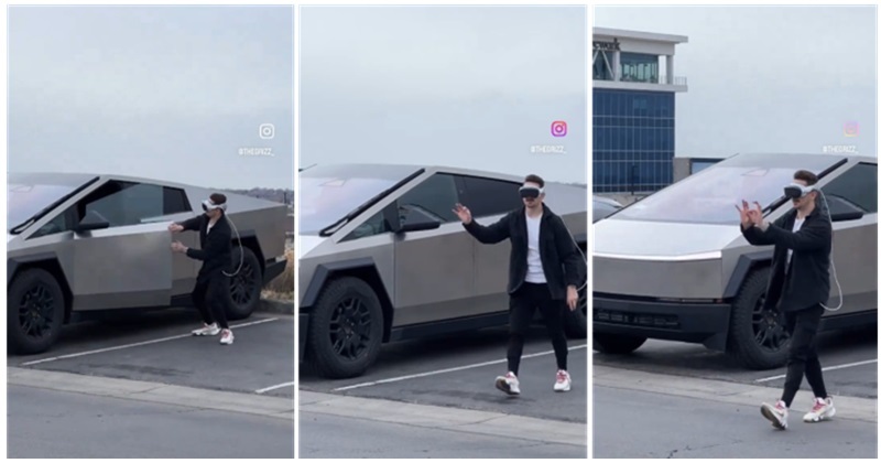 This Cybertruck owner ramped up the posing stakes by adding an Apple Vision Pro, and got owned into another dimension