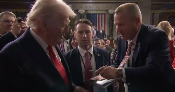 As Trump was exiting his State of the Union address, Nehls exploded into a 1960’s high school girl seeing the Beatles on Ed Sullivan-type reaction to Trump passing by.