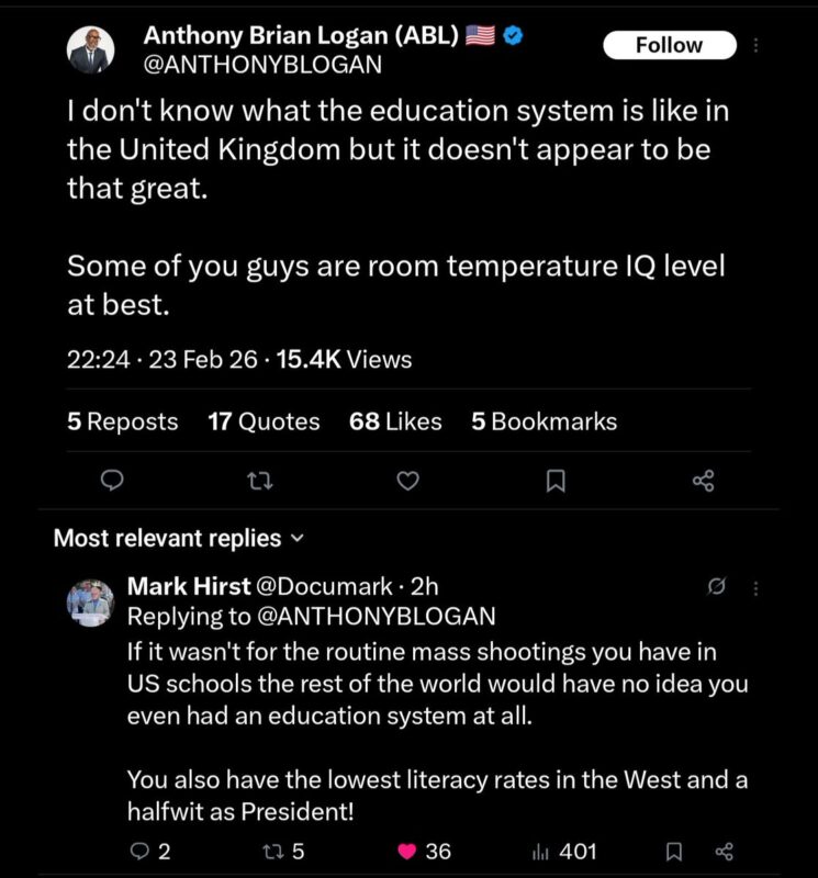— Anthony Brian Logan (ABL) 🇺🇸 (@ANTHONYBLOGAN) February 25, 2026
