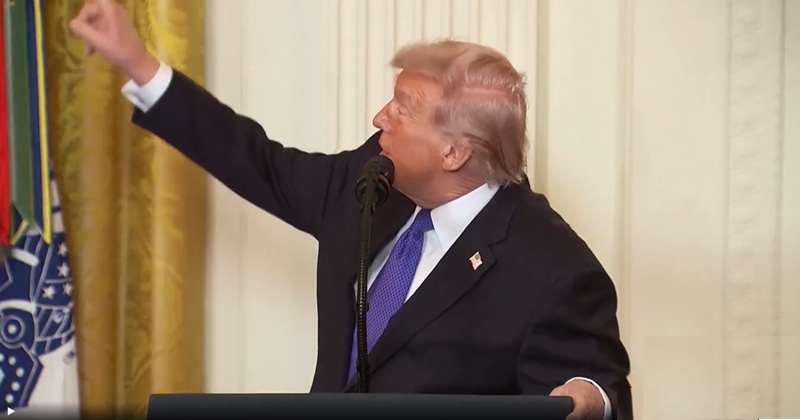 This is a Medal of Honor ceremony. The military veterans and their families are here listening to this. https://t.co/w6wqdYswDu