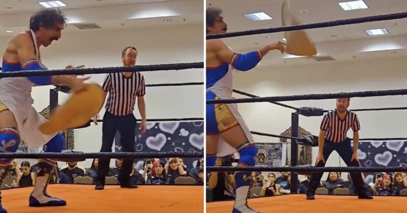 This pizza-loving wrestler’s hilarious special move just went wildly viral and there’s simply no topping this