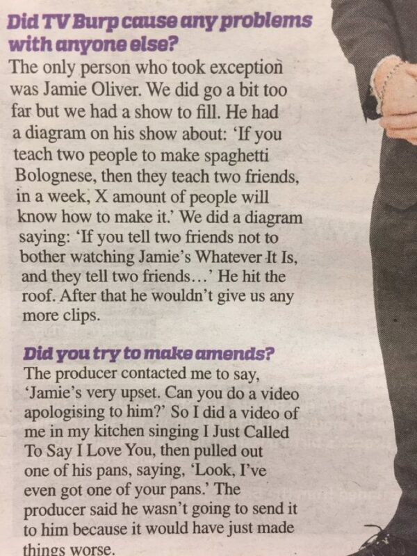Harry Hill’s tale of how Jamie Oliver once took great offence at TV Burp is a celebrity troll for the ages