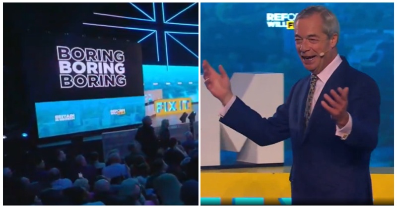 Absolutely incredible scenes from the @reformparty_uk team for having “BORING” graphics ready to go at the press of a button for when a heckler interrupts them lmfao https://t.co/N29sQOvo4S pic.twitter.com/KCs2cqvhW9