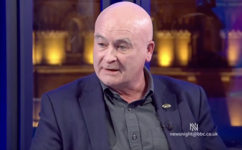 To the studios of BBC2’s Newsnight, where Mick Lynch, the former rail trade union leader was invited on to talk Donald Trump, among many other things.