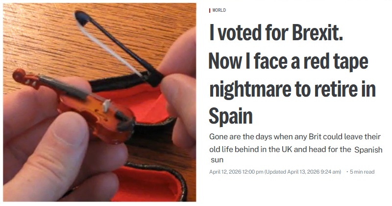 Break out the world’s smallest violin for this Brexiter complaining about red tape threatening his plan to retire to Spain – 21 responses devoid of any sympathy