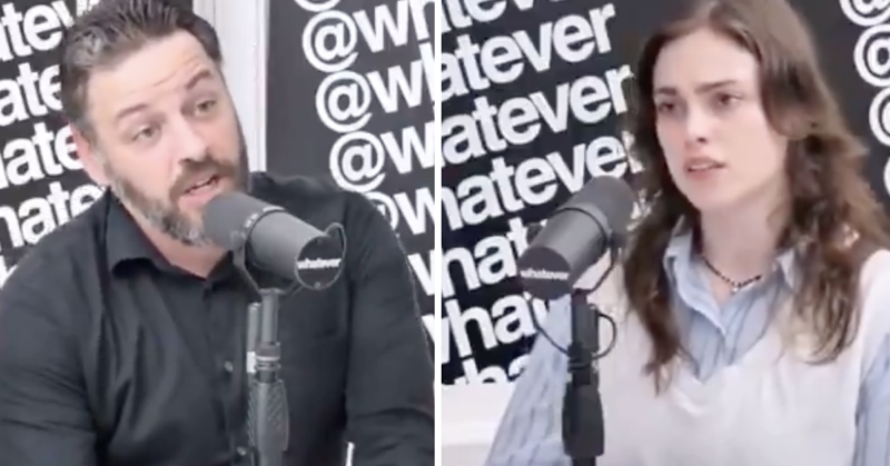 Family-values advocate Andrew Wilson has an on-stream meltdown after a female debater reveals that his wife has three children by three different men and was married twice before him