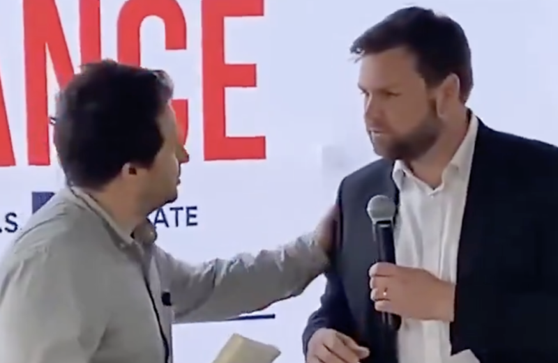 JD Vance being interrupted by an audience member with an urgent query about his book and it will never not be brilliant