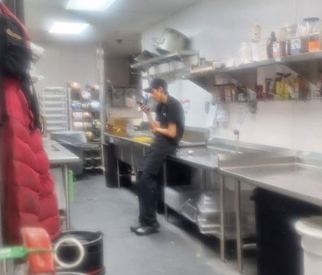 Kitchen is clean, no customers, no orders to fulfill, everything restocked…fuck u want him do some jumping jacks???