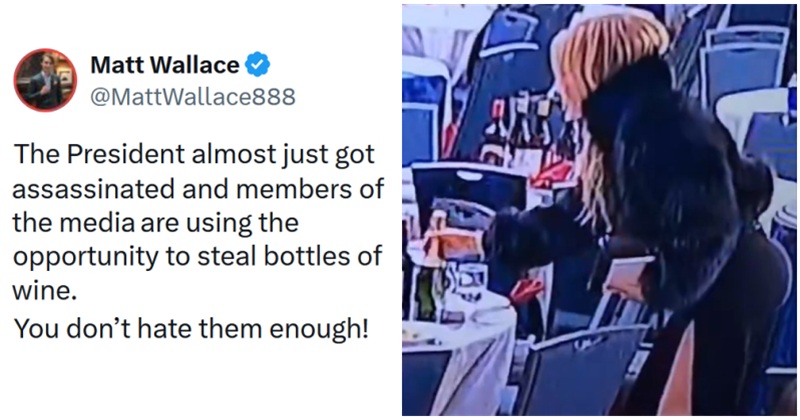 The President almost just got assassinated and members of the media are using the opportunity to steal bottles of wine.