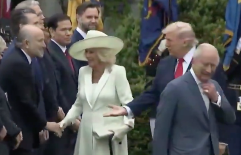 Trump cuts in front of Queen Camilla to shake some hands pic.twitter.com/Oa4wRpk72x